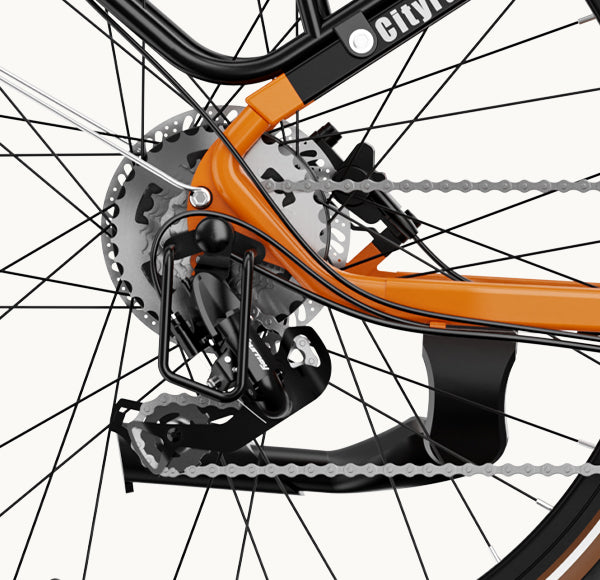 Cityrun features a Shimano 7-speed gear shift system for smooth and precise gear changes, enhancing your riding experience.