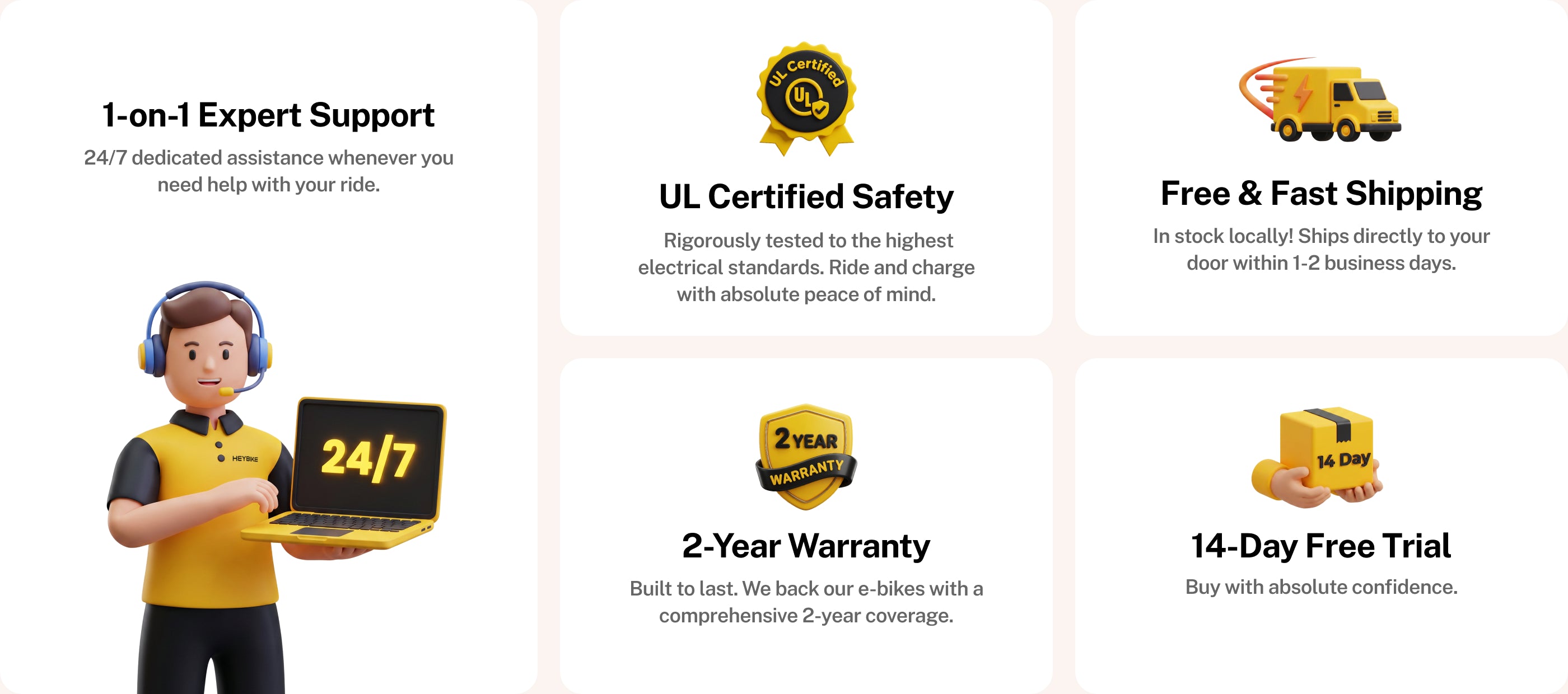 Special anniversary discounts and free gifts are available on select models. Because these offers are tailored to each e-bike, please refer to the specific product pages for the most up-to-date pricing and gift details.