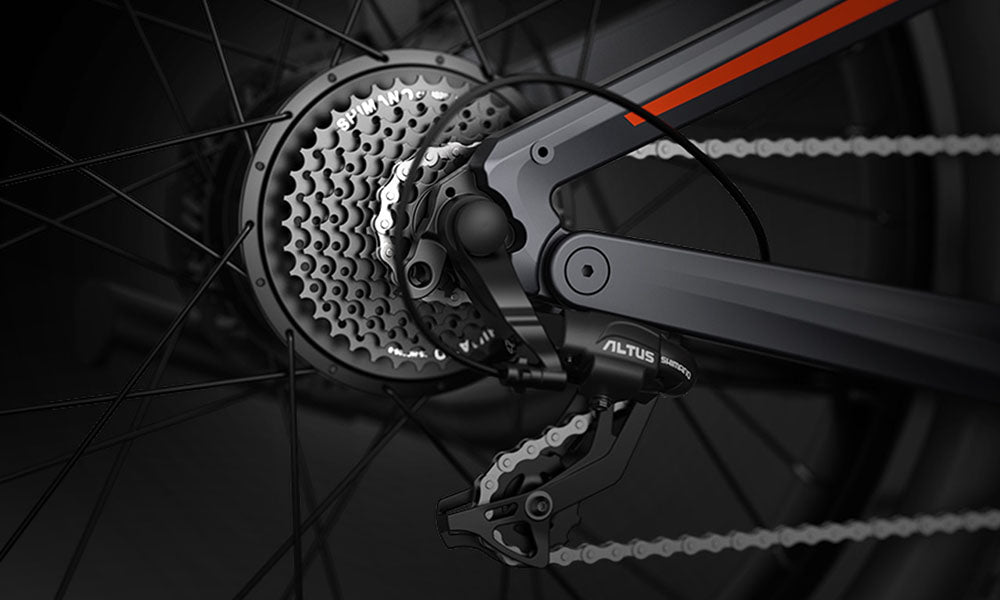 Embrace the precision of Shimano 9-speed gear shift system, delivering seamless transitions that empower your control on both steep ascents and thrilling descents. When paired with Hero's potent motor, experience the ultimate in gear versatility and confident maneuverability.