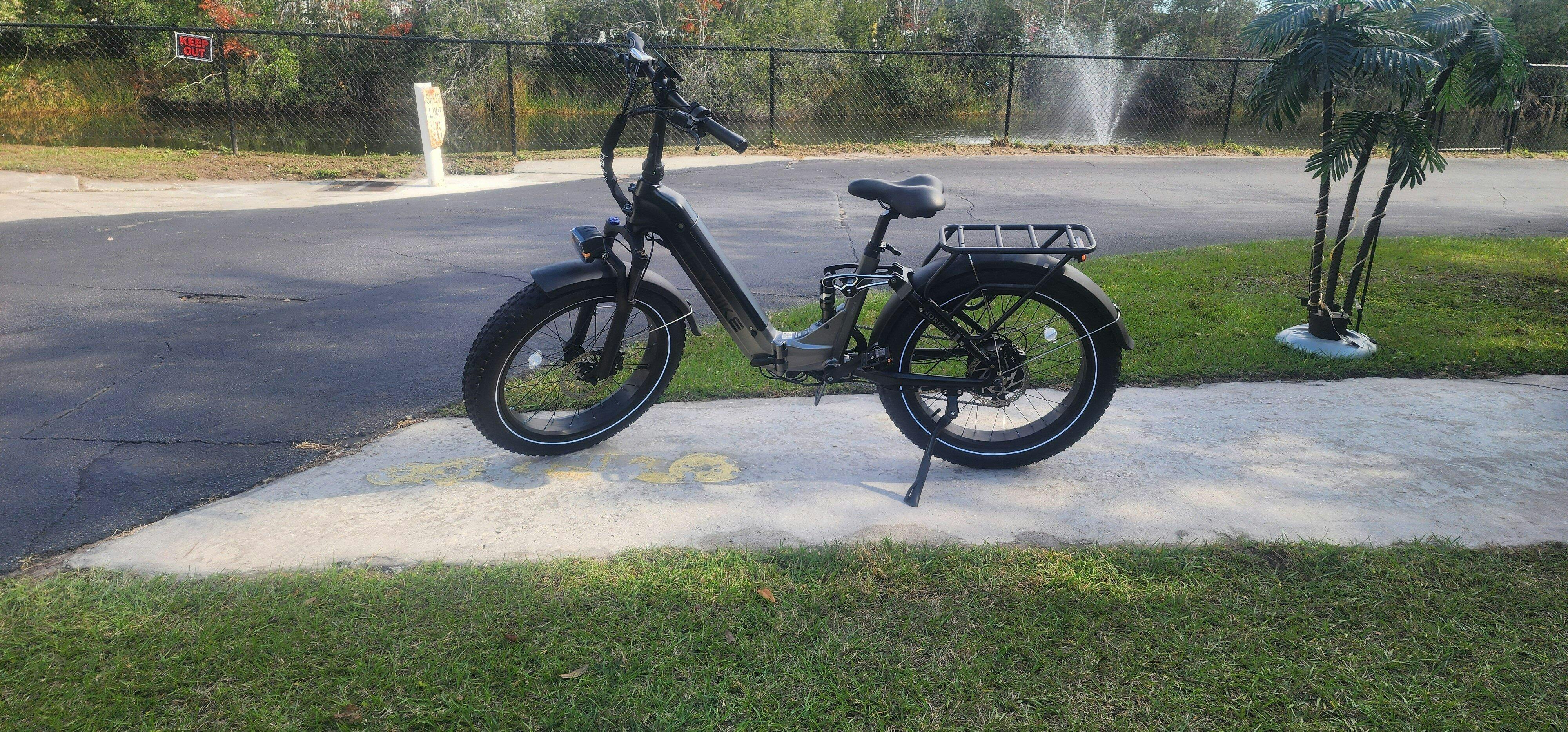 LED headlight with auto-on feature, and integrated taillight with brake light.