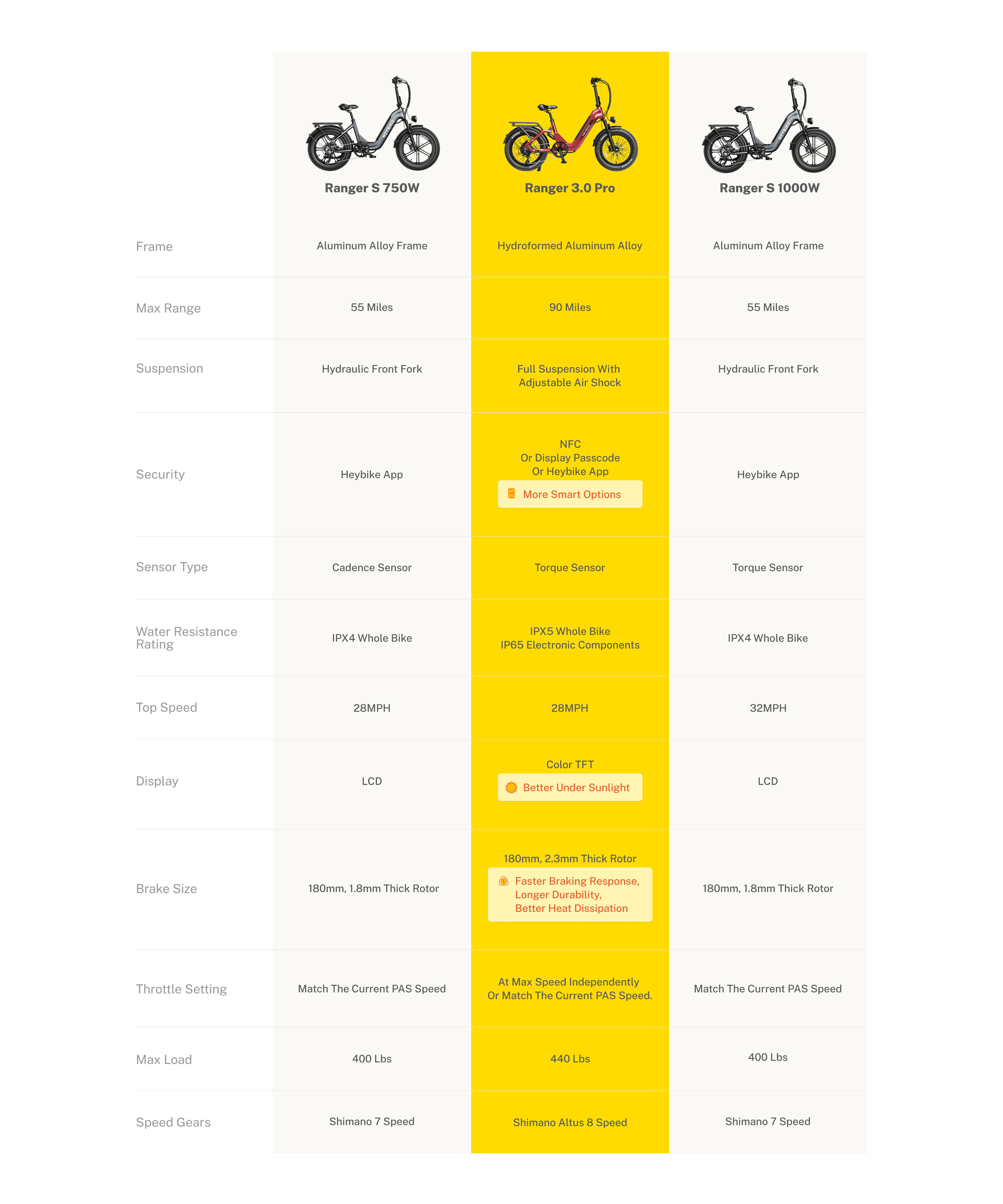 The Ranger 3.0 Pro uses a torque sensor, which delivers a more natural and responsive ride by matching motor assistance to how hard you're pedaling. It feels like your own power is being amplified. In contrast, cadence sensors activate motor power based on pedaling motion alone, often resulting in more abrupt or less consistent acceleration.